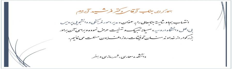پیام تبریک انتصاب جناب آقای دکتر فرشید آرام